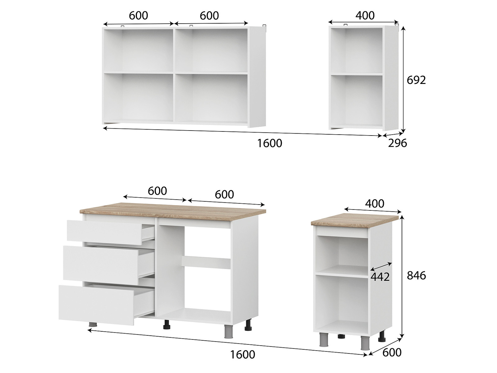 - Кухонный гарнитур Денвер 1600 Белый текстурный