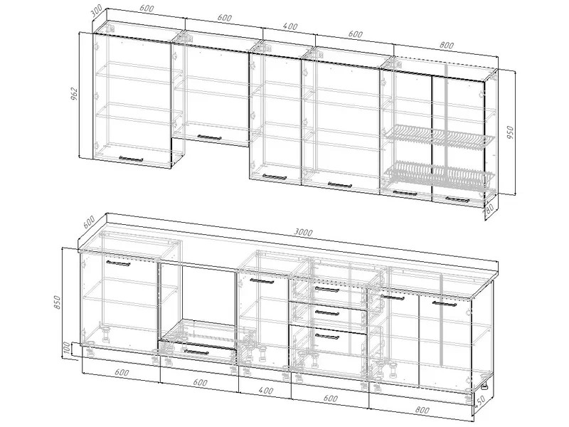 - Кухонный гарнитур Меренга 3000 (верх 950 мм) МДФ