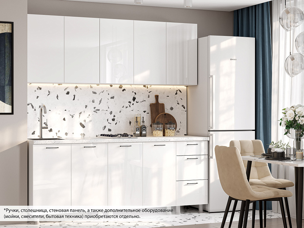 Кухонный гарнитур Модерн New 2000 МДФ без столешниц Белый глянец