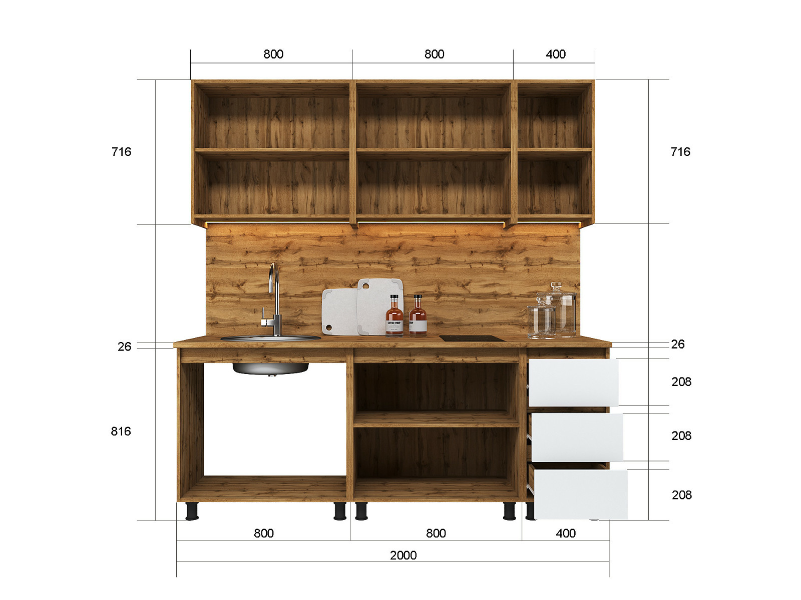 Кухонный гарнитур Норди Reform 2000 мм ЛДСП Вотан/Белый