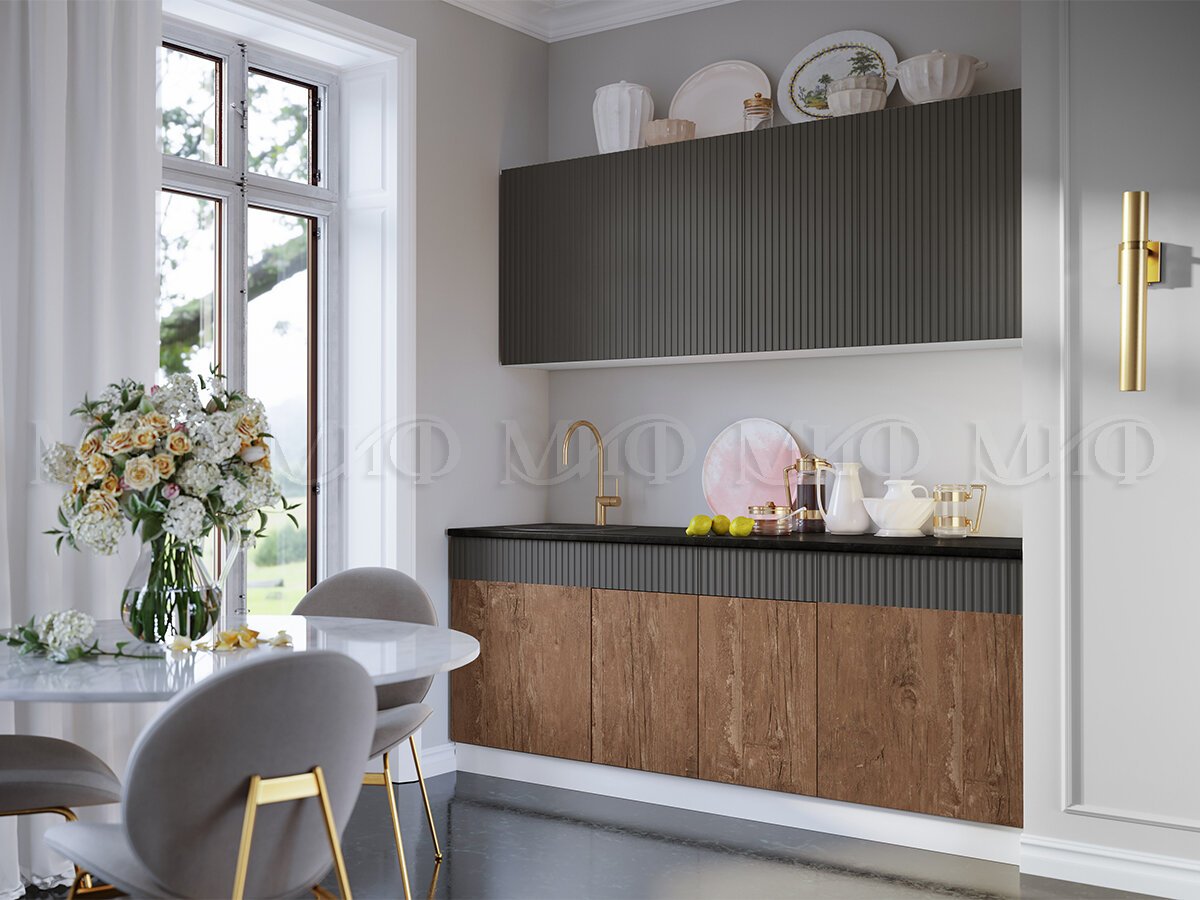 - Кухонный гарнитур Оливия 2000 Экзотическое дерево Амазония/Графит