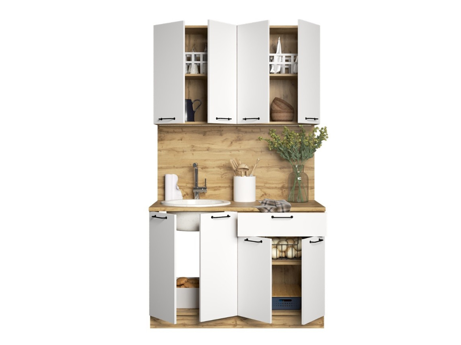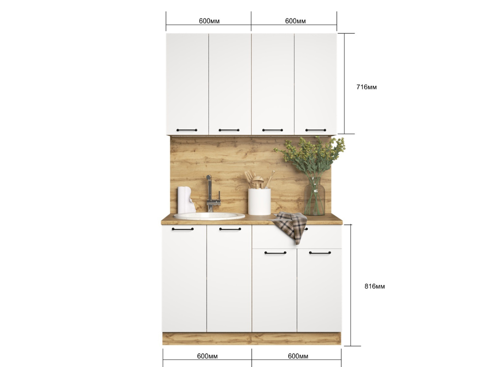 - Кухонный гарнитур Валерия 1200 мм МДФ Вотан/Белый