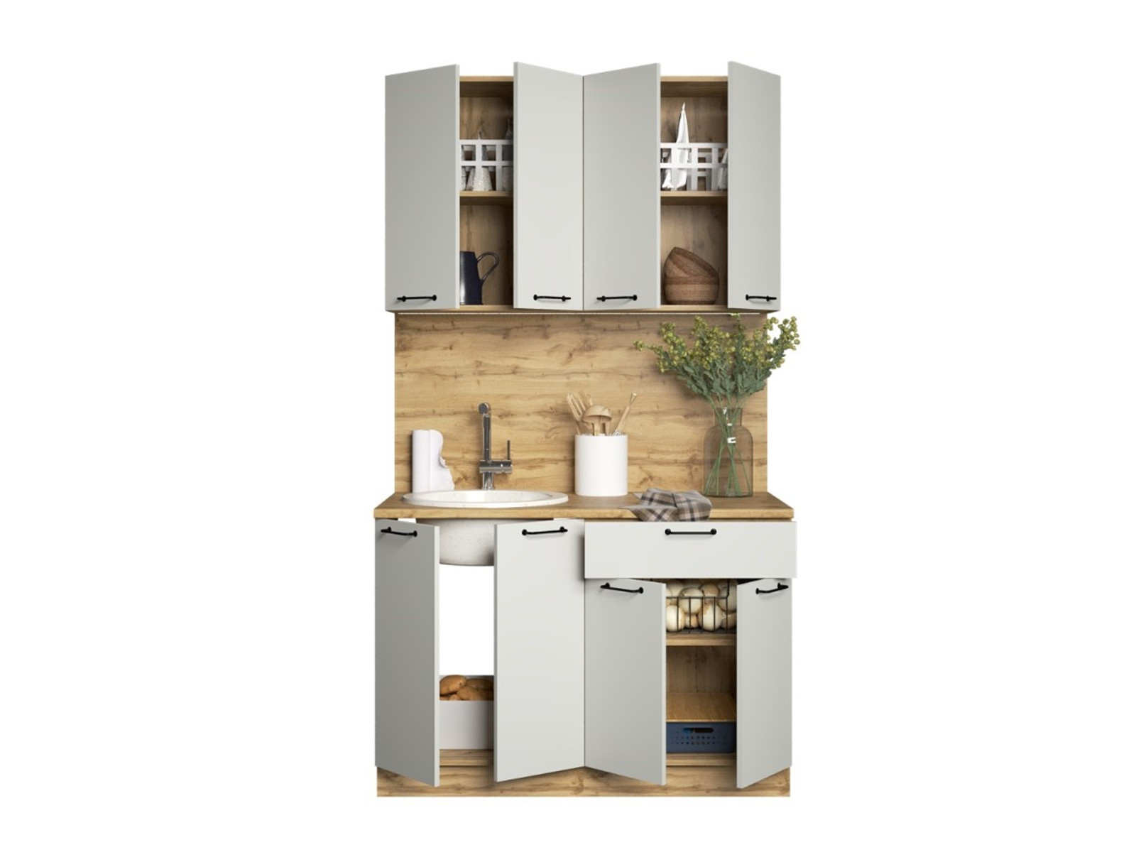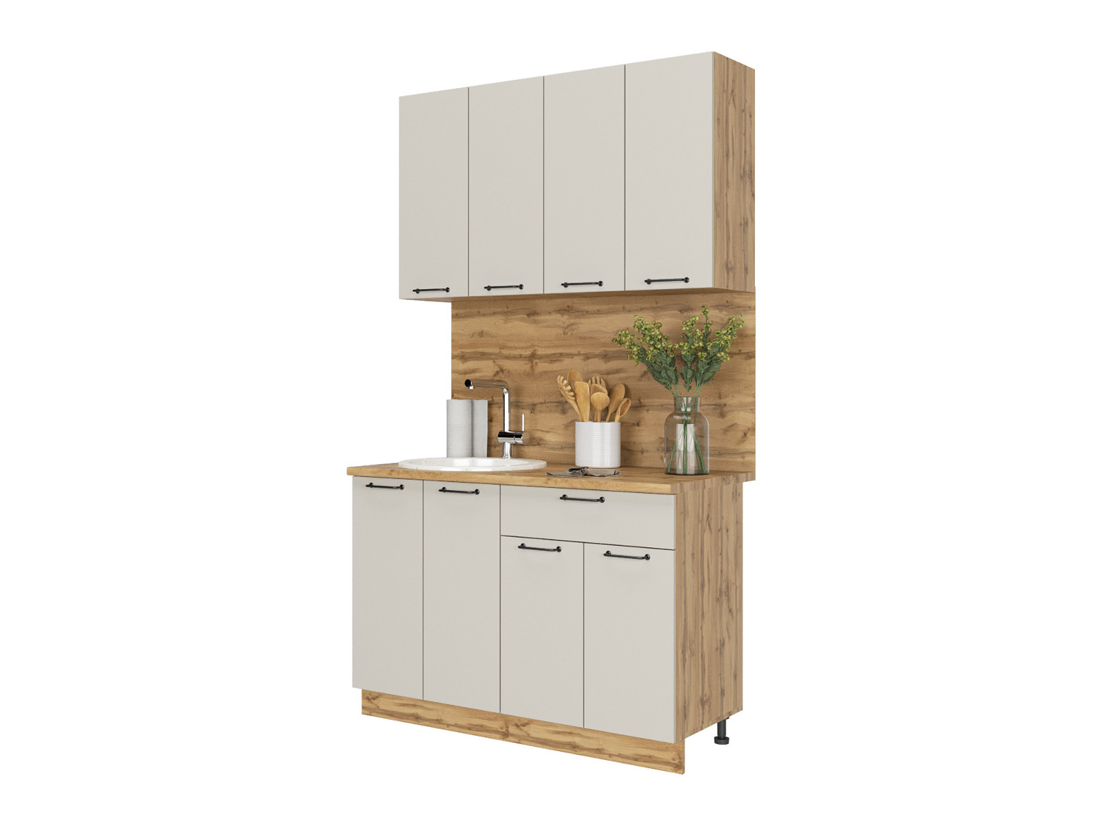 - Кухонный гарнитур Валерия 1200 мм МДФ Вотан/Серый