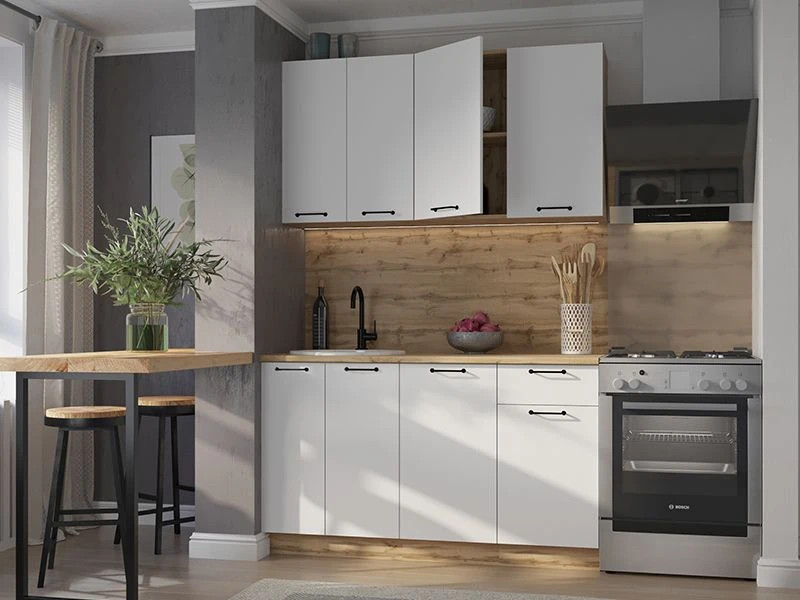 - Кухонный гарнитур Валерия 1400 мм МДФ Вотан/Белый