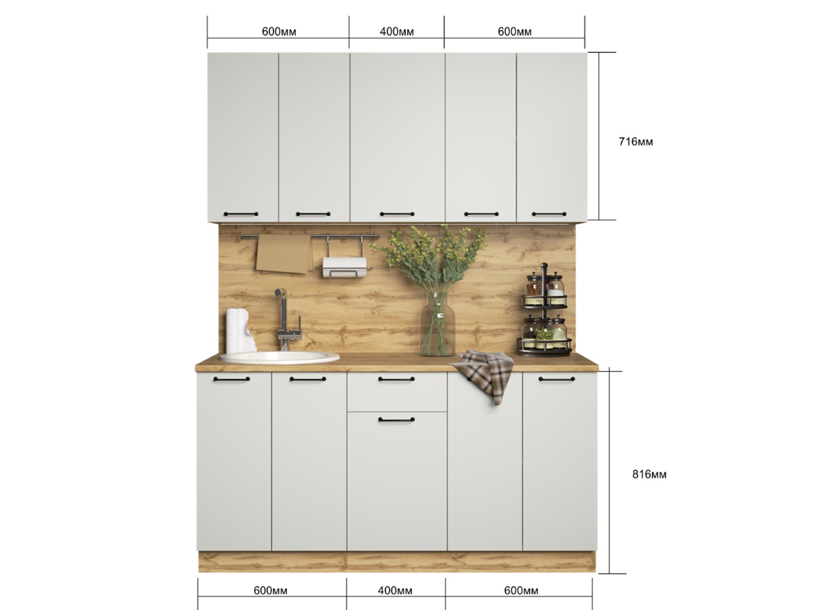 - Кухонный гарнитур Валерия 1600 мм МДФ Вотан/Серый