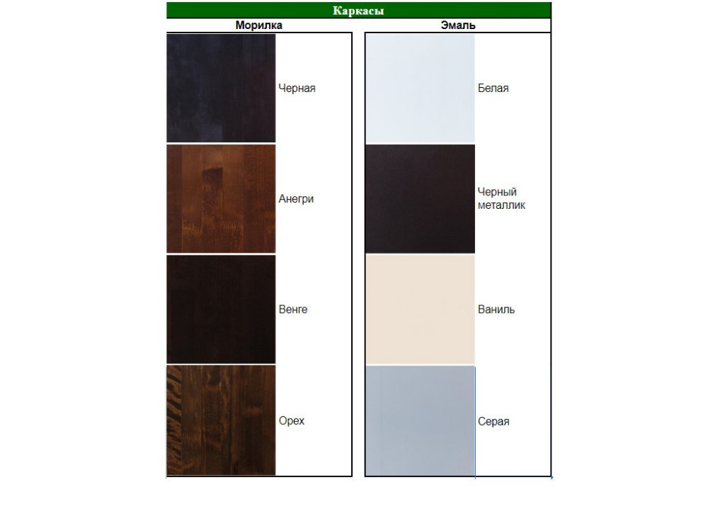 - Каркас: массив березы, покрытие - морилка/эмаль;