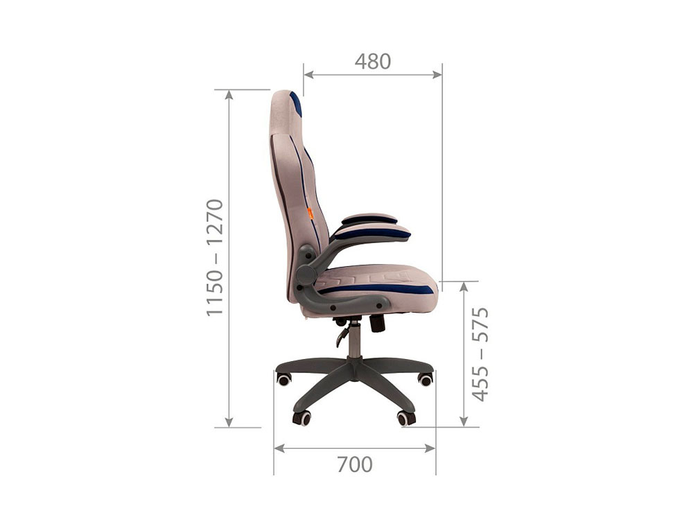 - Кресло Chairman game 55 Россия голубой/серый велюр Т71/Т55 пластик черный