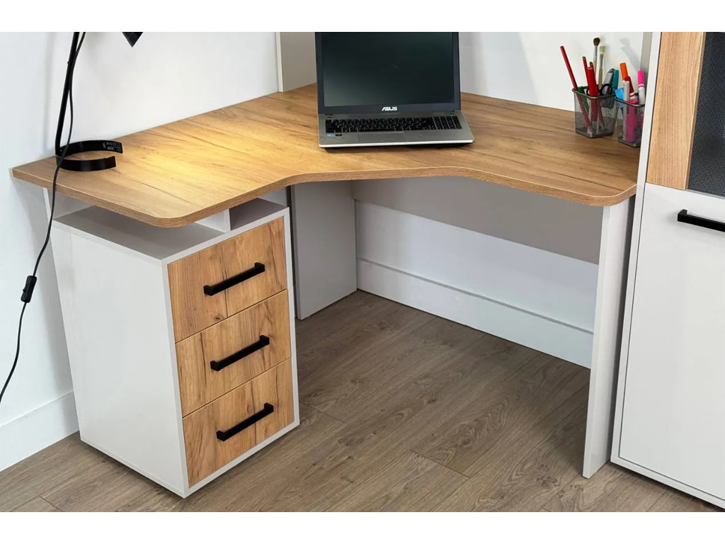 - Стол компьютерный 1200 угловой Лайт-2 кашемир/дуб крафт золотой