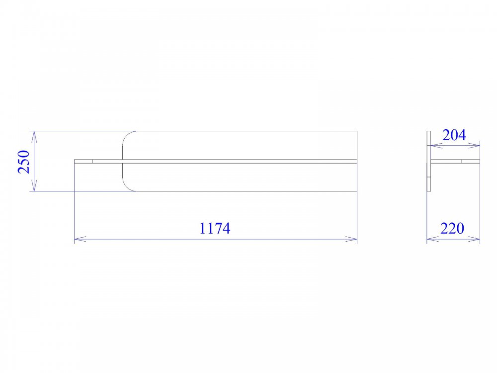 Размер ШхГхВ: 1174*220*250 мм