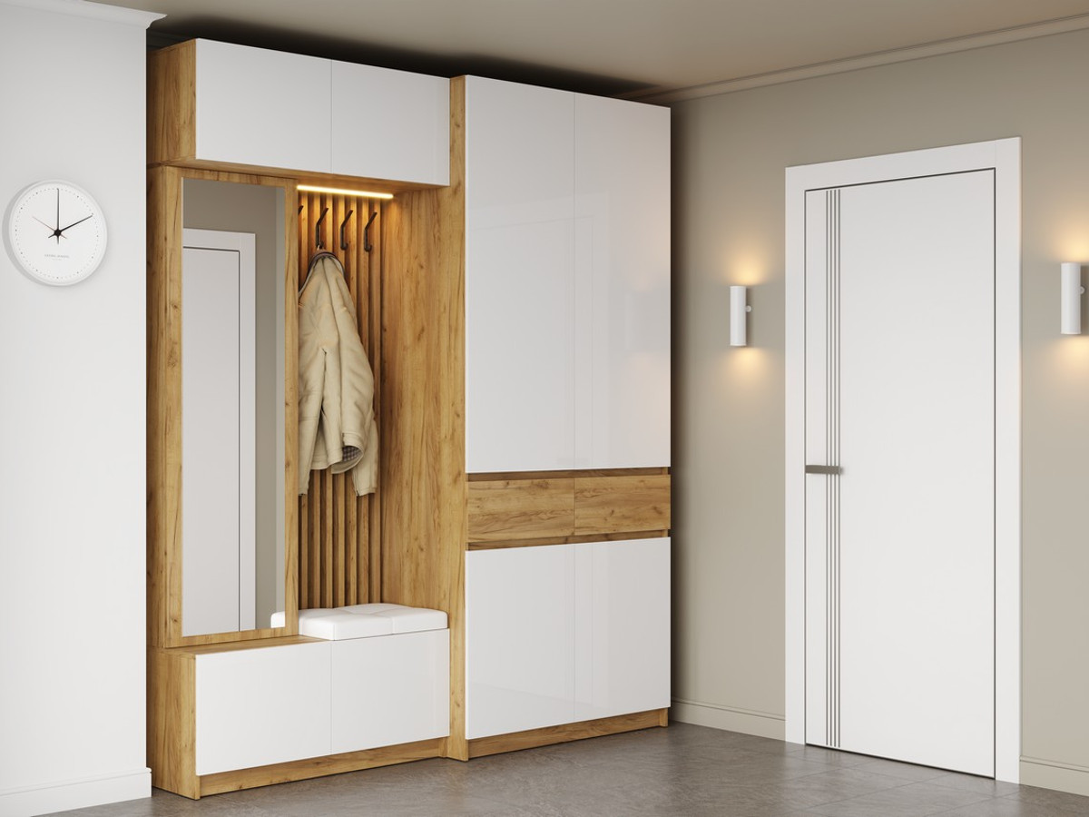 - Модульная прихожая Бостон МДФ белый с двухдверным шкафом
