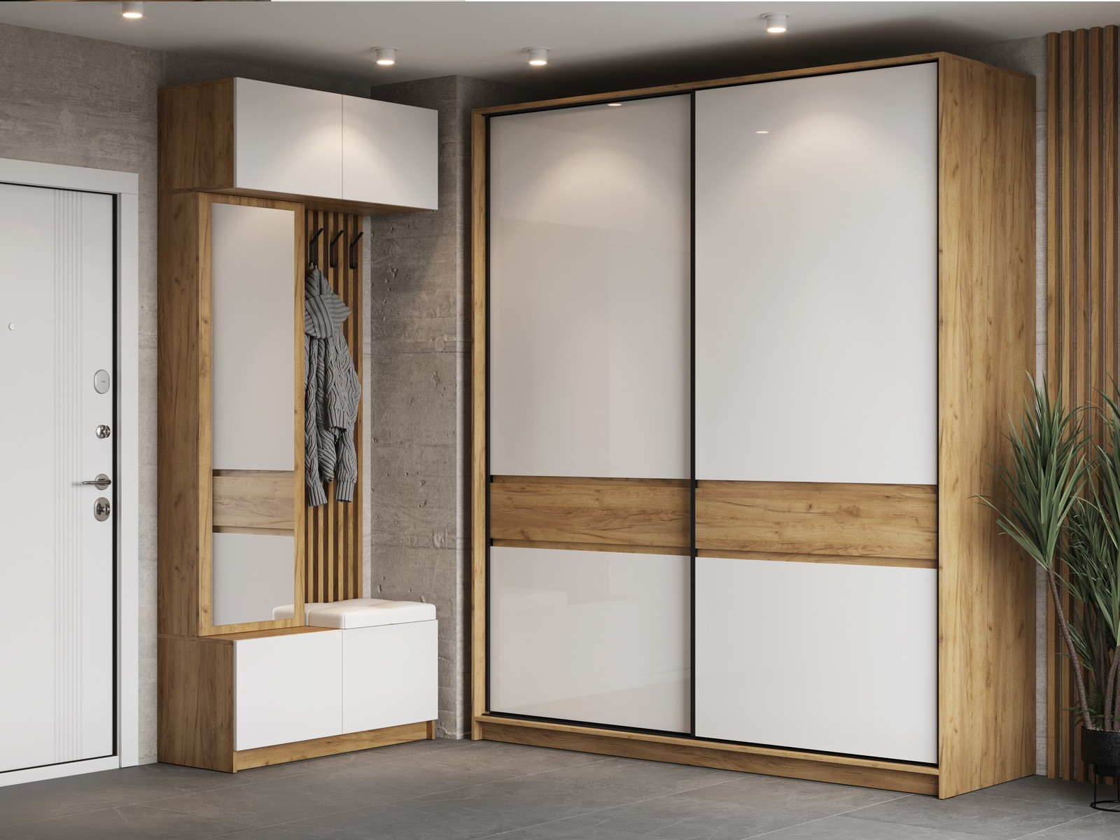 - Модульная прихожая Бостон МДФ белый со шкафом купе