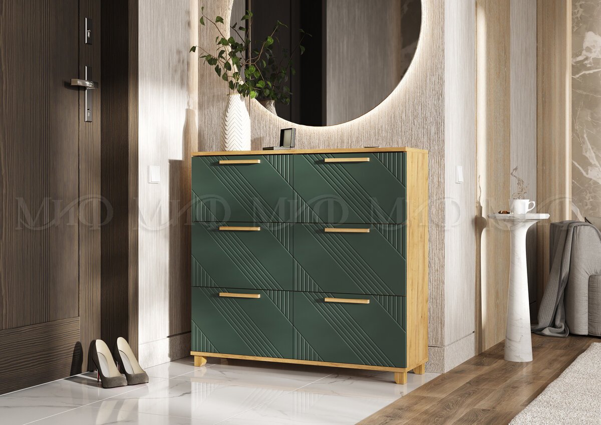 - Обувница (1000) Ирис Браш Мени Грин, Дуб Крафт