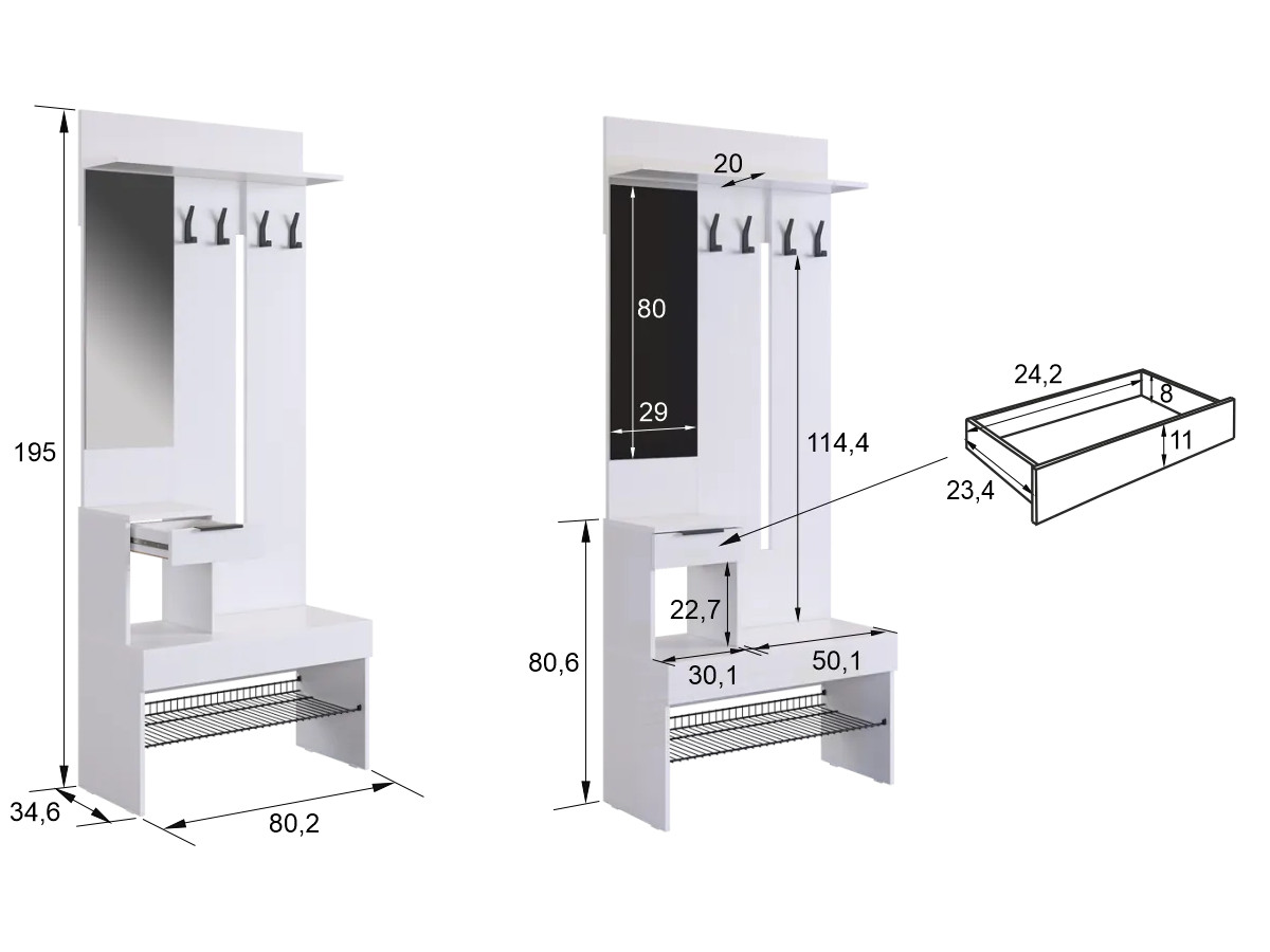 Прихожая Баско белое дерево