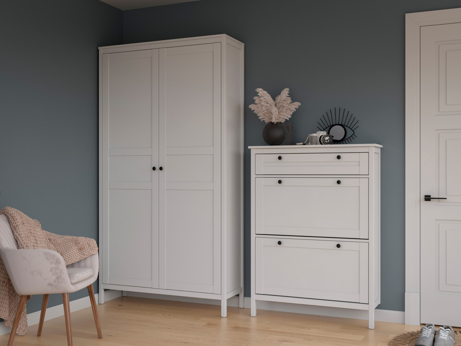 Цена за комплект: Шкаф для одежды 2-дверный, Дверь в шкаф для одежды глухая (2шт), Вешалка широкая, Тумба низкая широкая