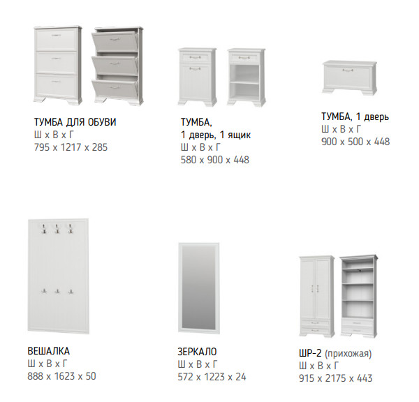 Цена за комплект: вешалка, зеркало, тумба 1дв, тумба 1дв.+1ящ, шкаф ШР-2 для одежды (ПРИХОЖАЯ)