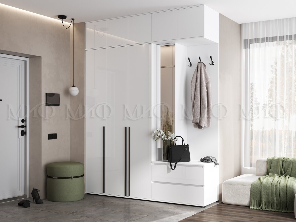 - Прихожая модульная Норд Белый глянец холодный