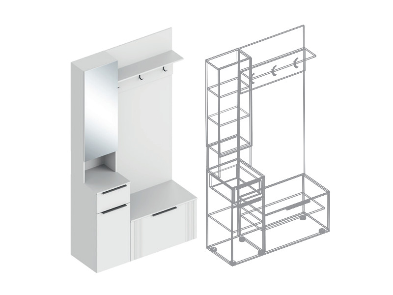 - Фасад: МДФ с фрезеровкой, плёнка ПВХ Силк Маус толщина 320-350 микрон МКМ (с праймером)