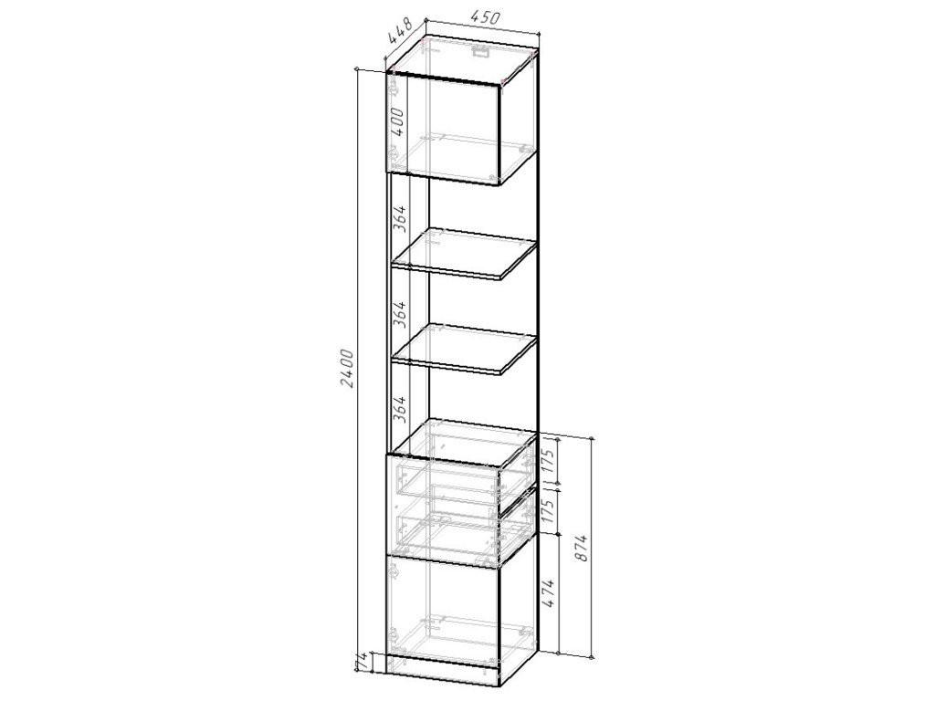 Габаритные размеры: Д.450 х В.2400 х Г.450 мм.