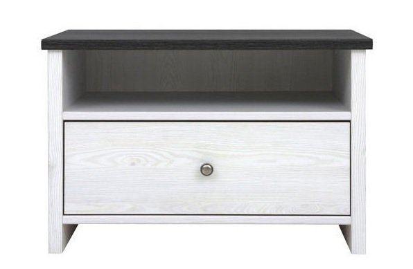 Тумба разделена на 2 отделения: открытое и выдвижной ящик на металлических роликовых направляющих.