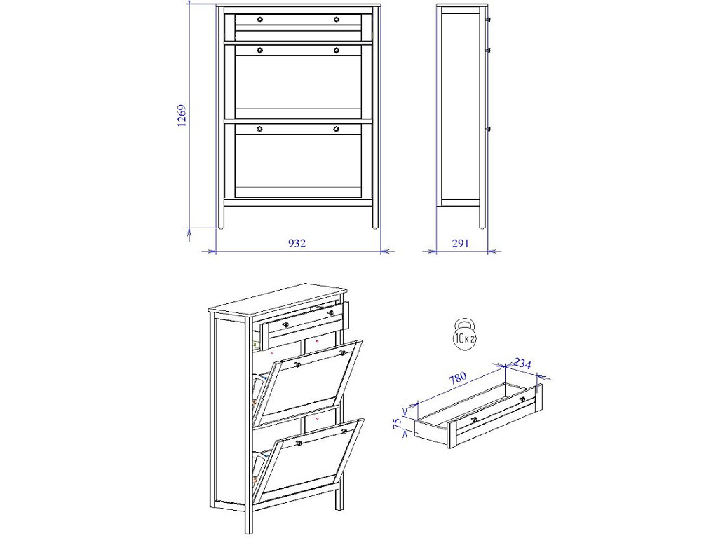 Макс.нагрузка на ящик (кг): 3