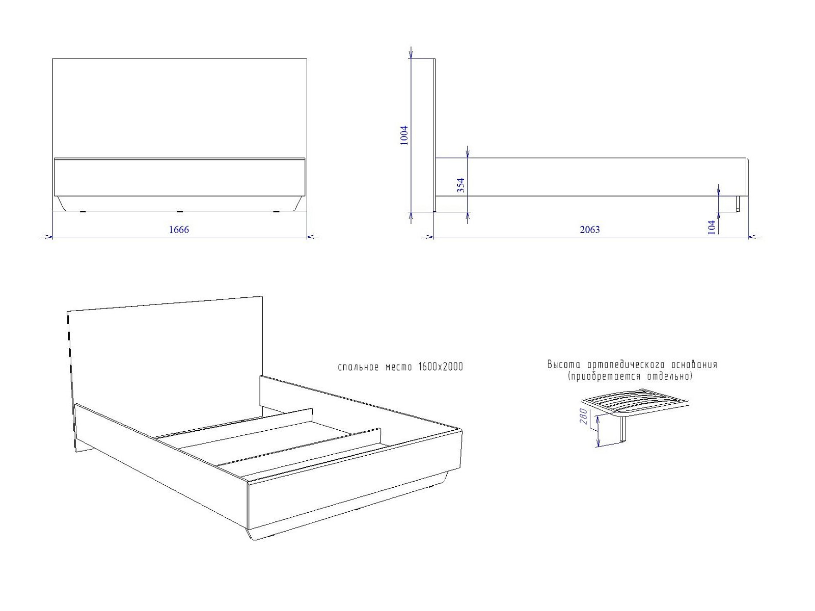 Спальное место: 1600*2000 мм