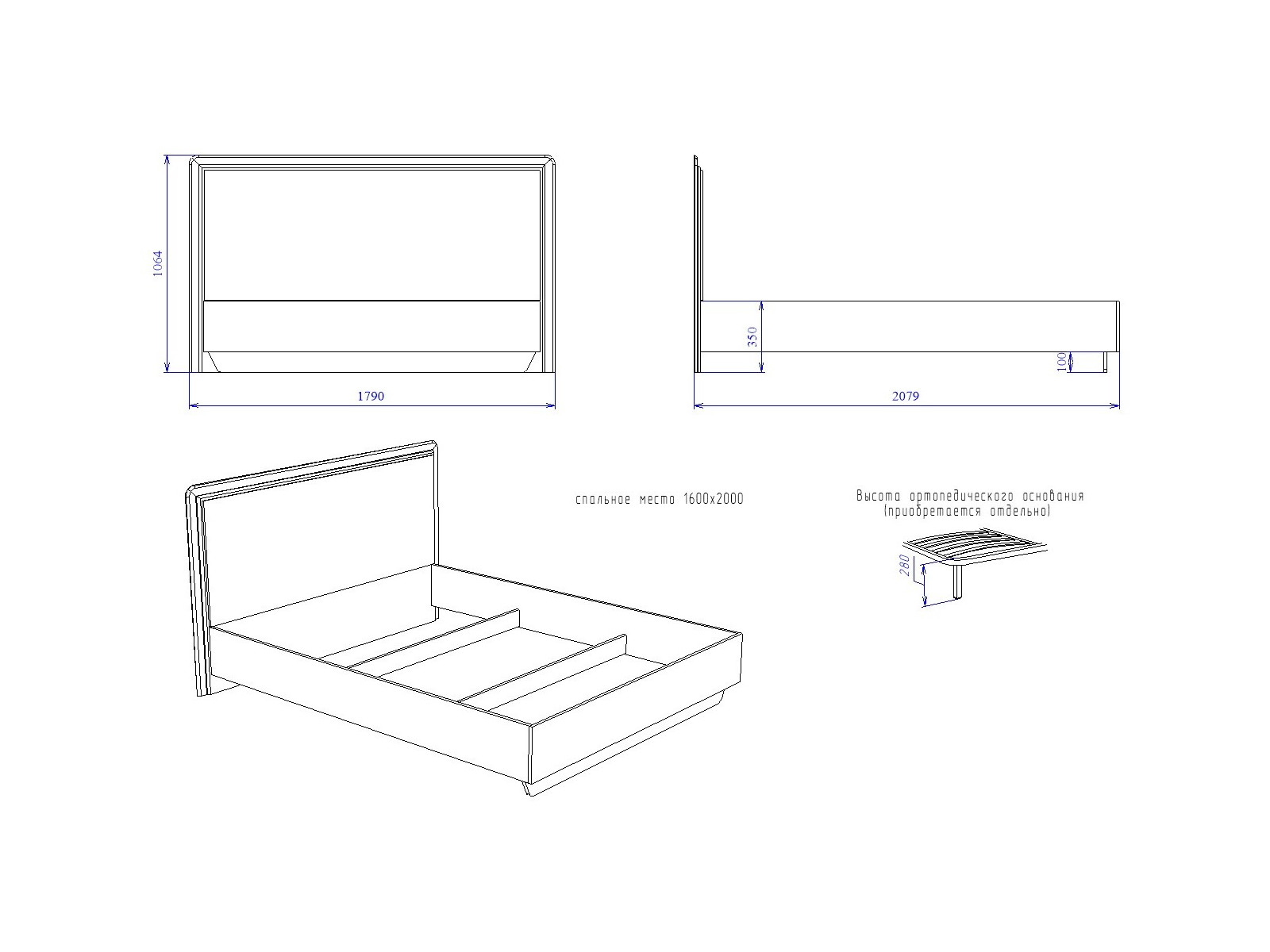 Спальное место: 1600*2000 мм