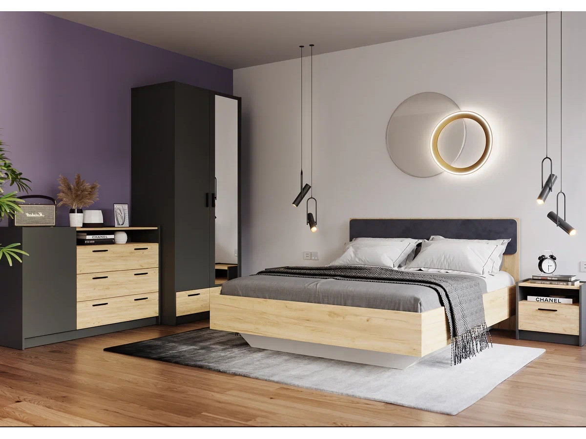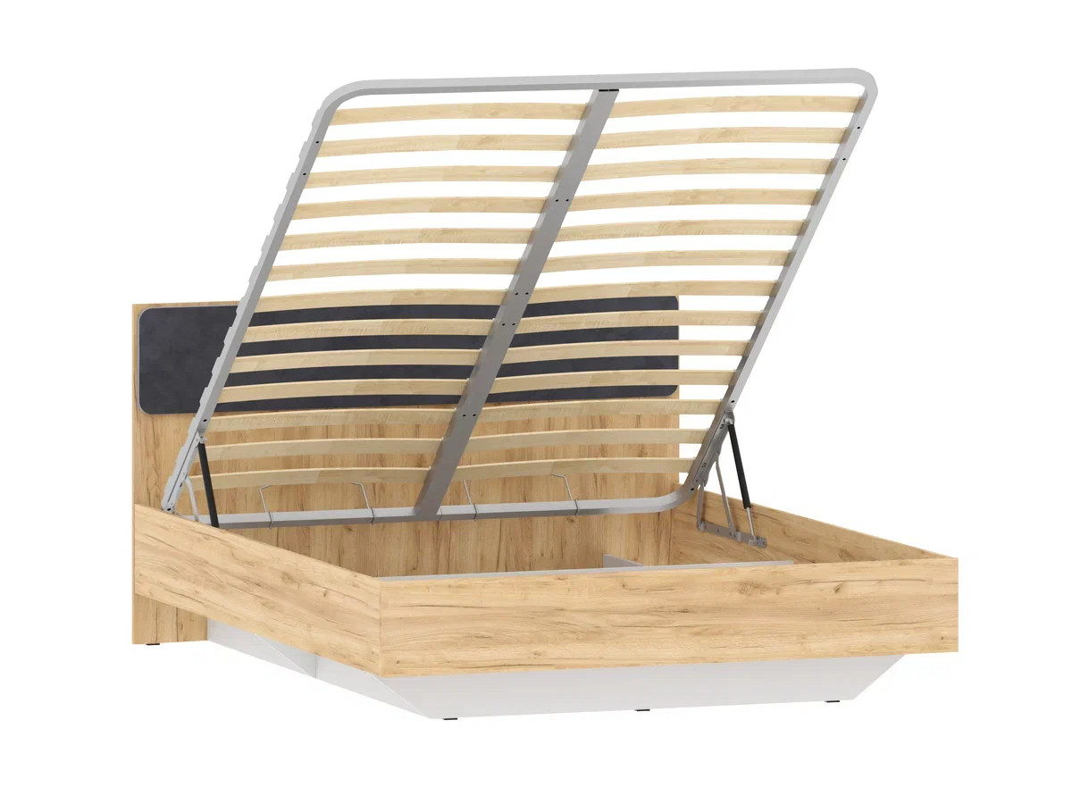 - Кровать Оттавия НМ 011.56 Велюр Ультра графит, Дуб Крафт Золотой