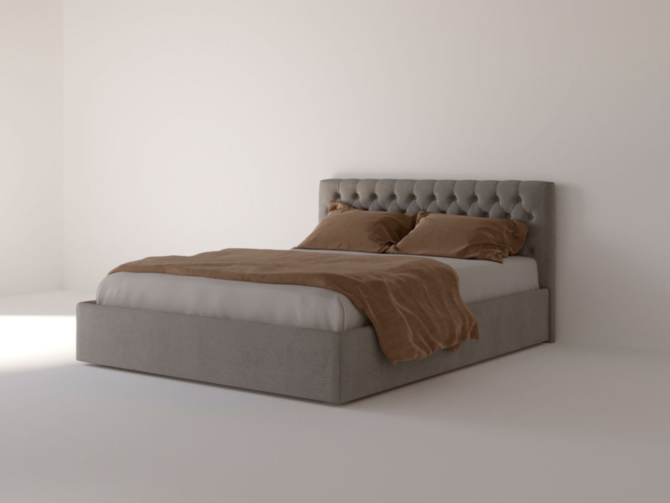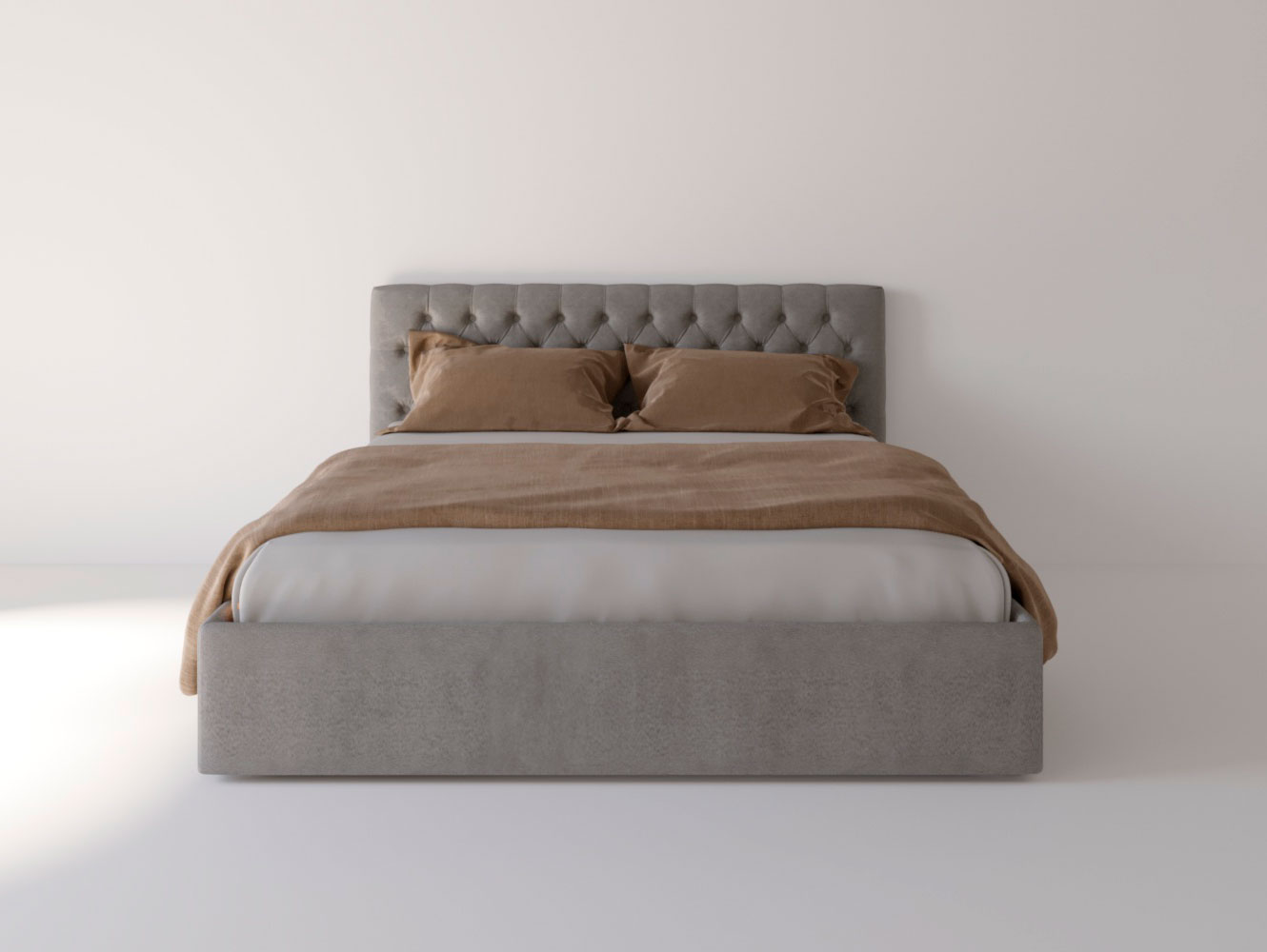 Изголовье: Изголовье оформлено с эффектом каретной стяжки, что создает эффектный акцент в дизайне. Этот элемент не только эстетичен, но и функционален, обеспечивая поддержку во время чтения или отдыха.