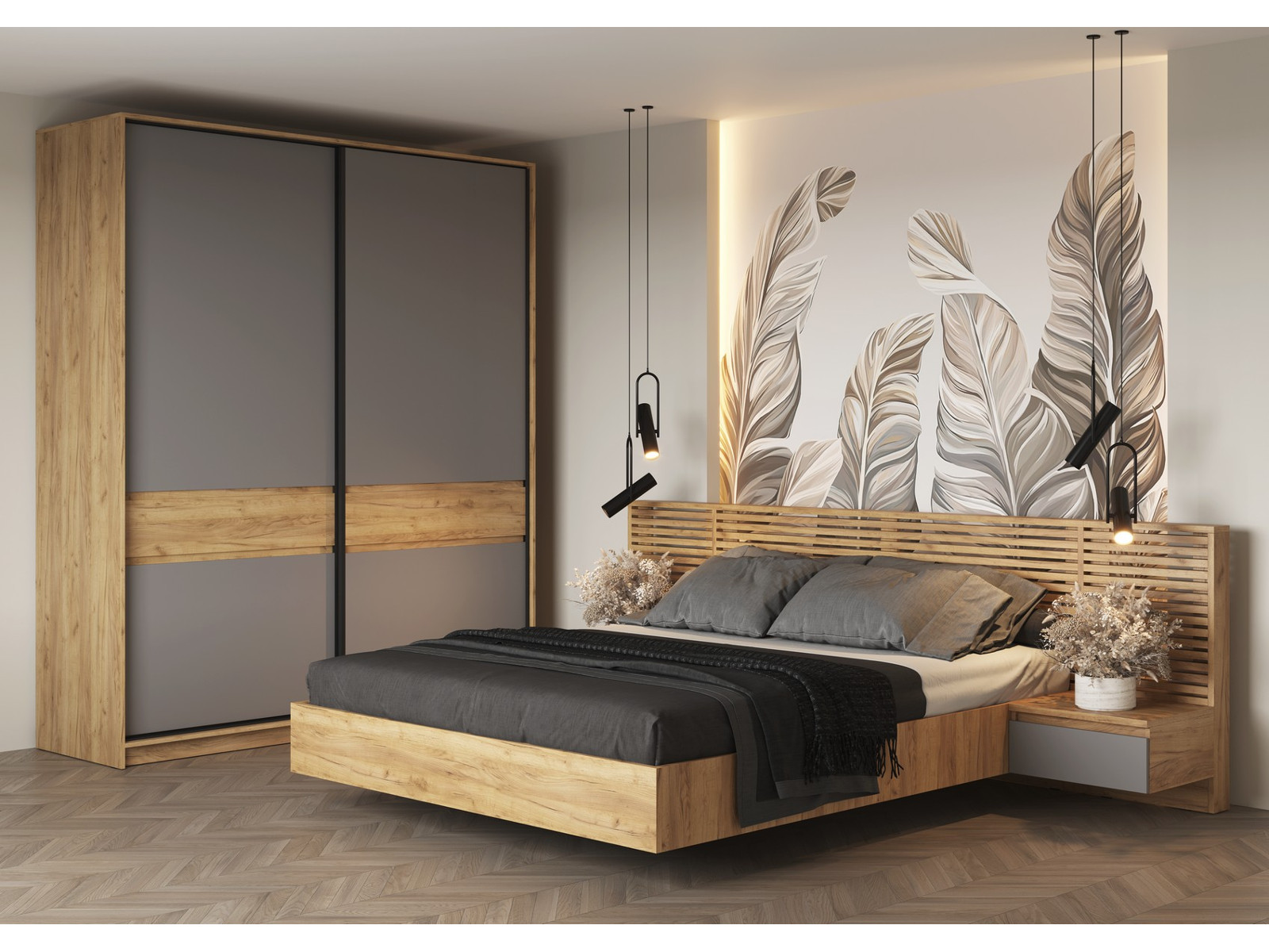 Спальня Бостон ЛДСП серый шифер со шкафом купе