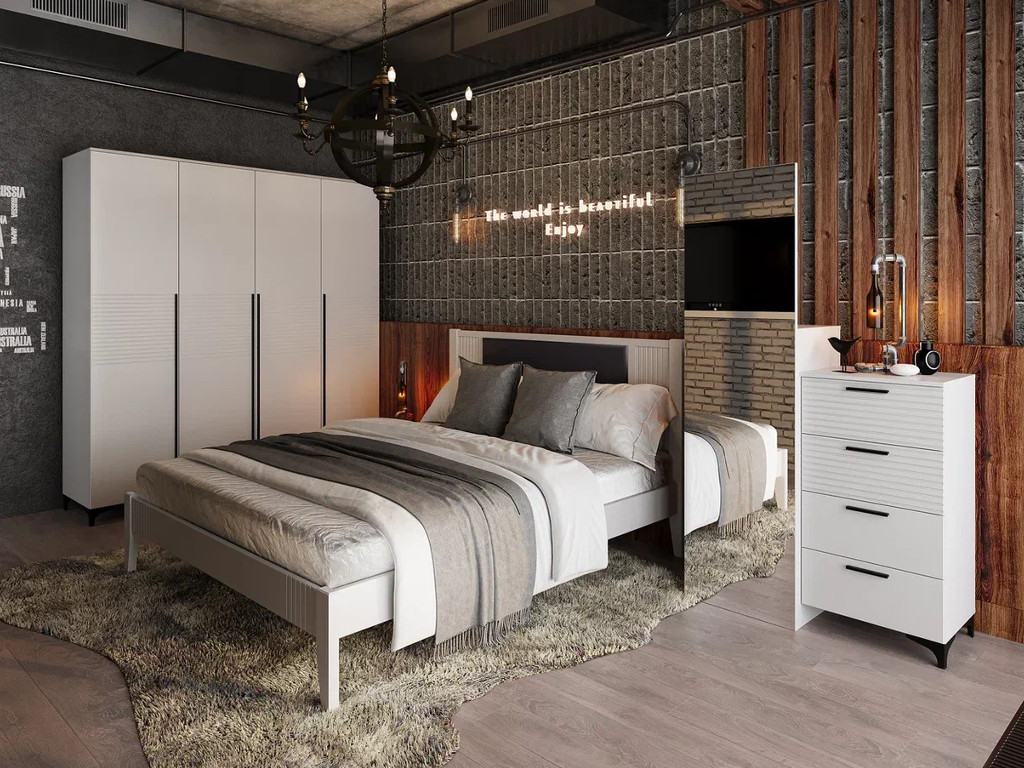 Цена указана за комплектацию на фото: шкаф ШР-4, комод с зеркалом, кровать Бетти 1400, Комплектующие на кровать с ламелями 1400 мм