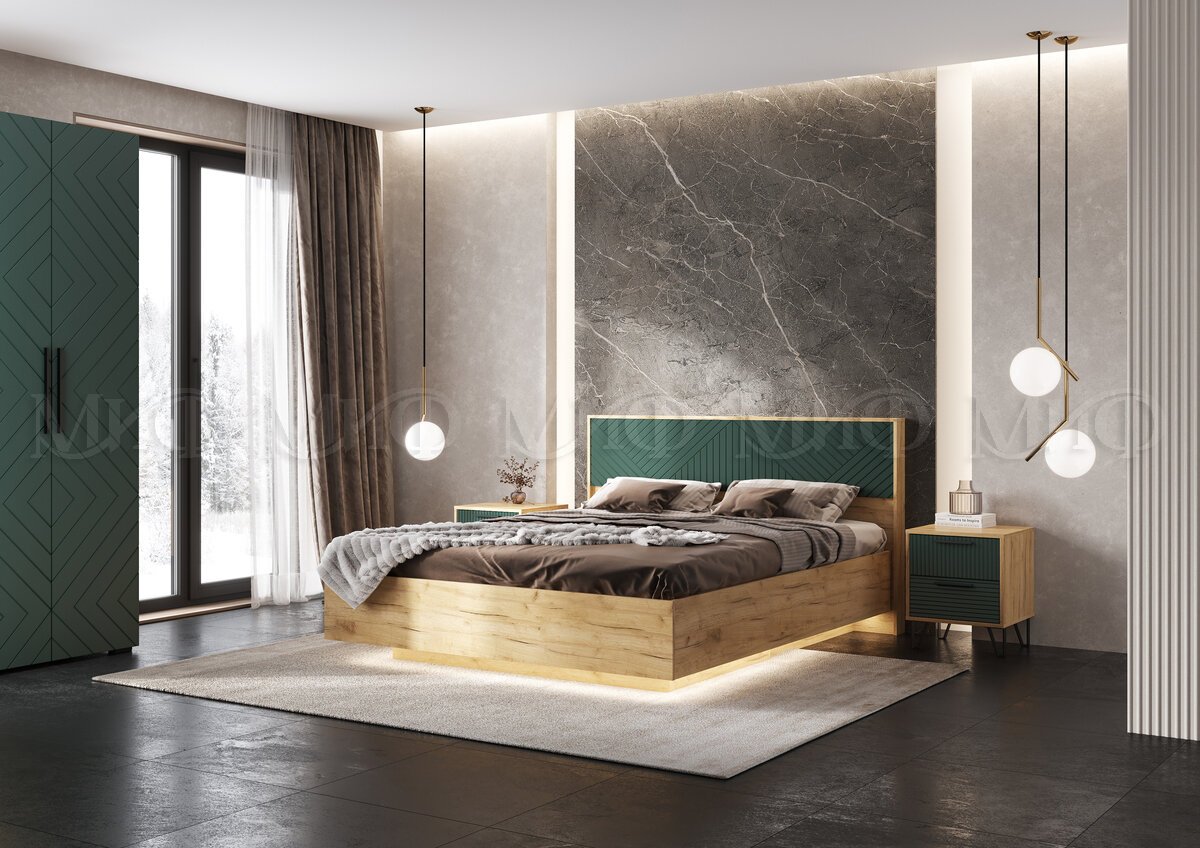 - Спальня Флэш Браш Мени Грин, Дуб Крафт