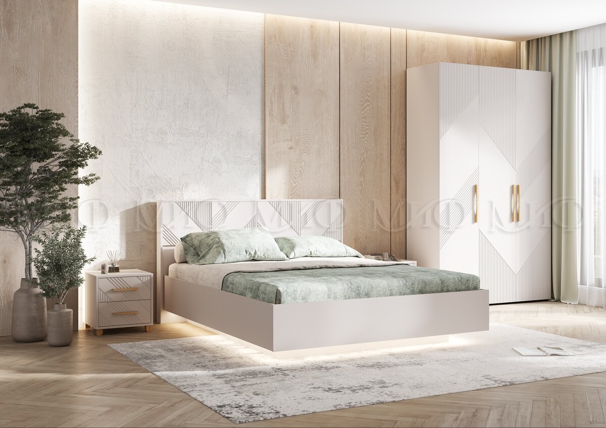 Цена за комплект: Кровать парящая 1,6м (ортопед дерево), Шкаф 3-х створчатый, Тумбы прикроватные