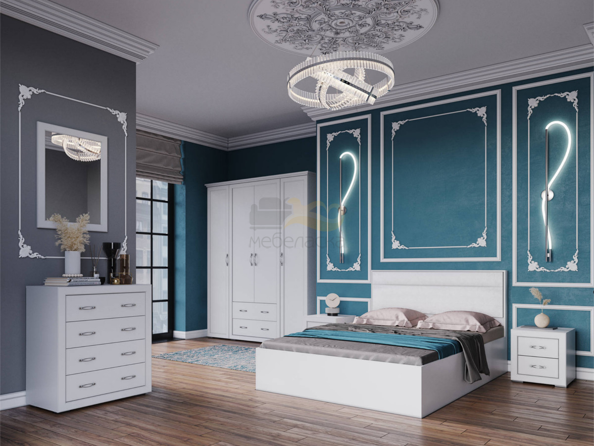 Цена за комплект: Зеркало, Комод, Тумба (2 шт), Шкаф, Кровать 1400, Основание ортопедическое
