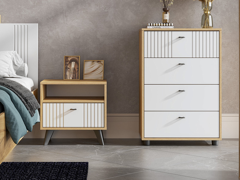 - Спальня Милан Дуб Золотой/Белый Матовый