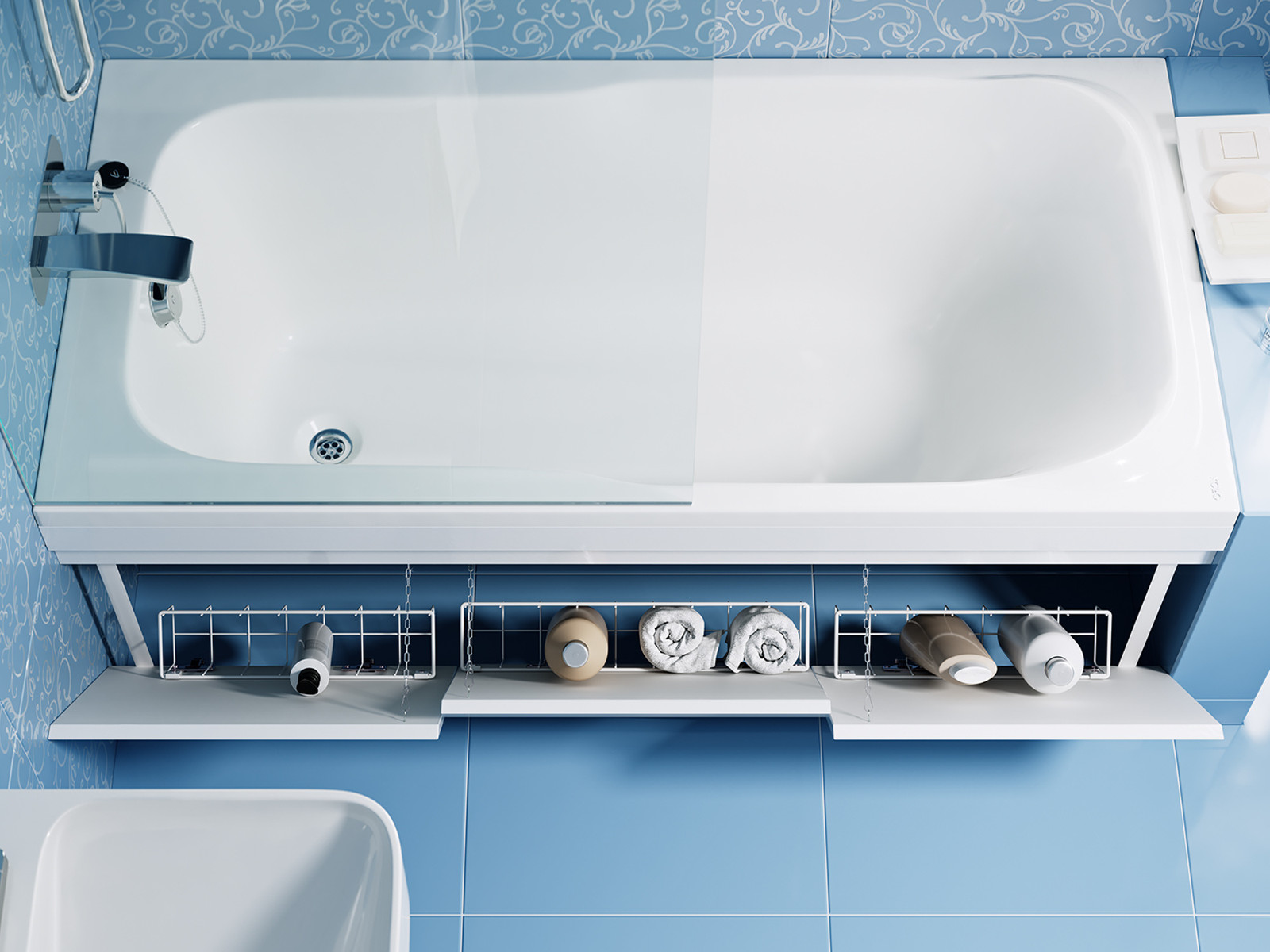 Экран может дополнительно комплектоваться корзинами для хранения, корзины продаются отдельно!