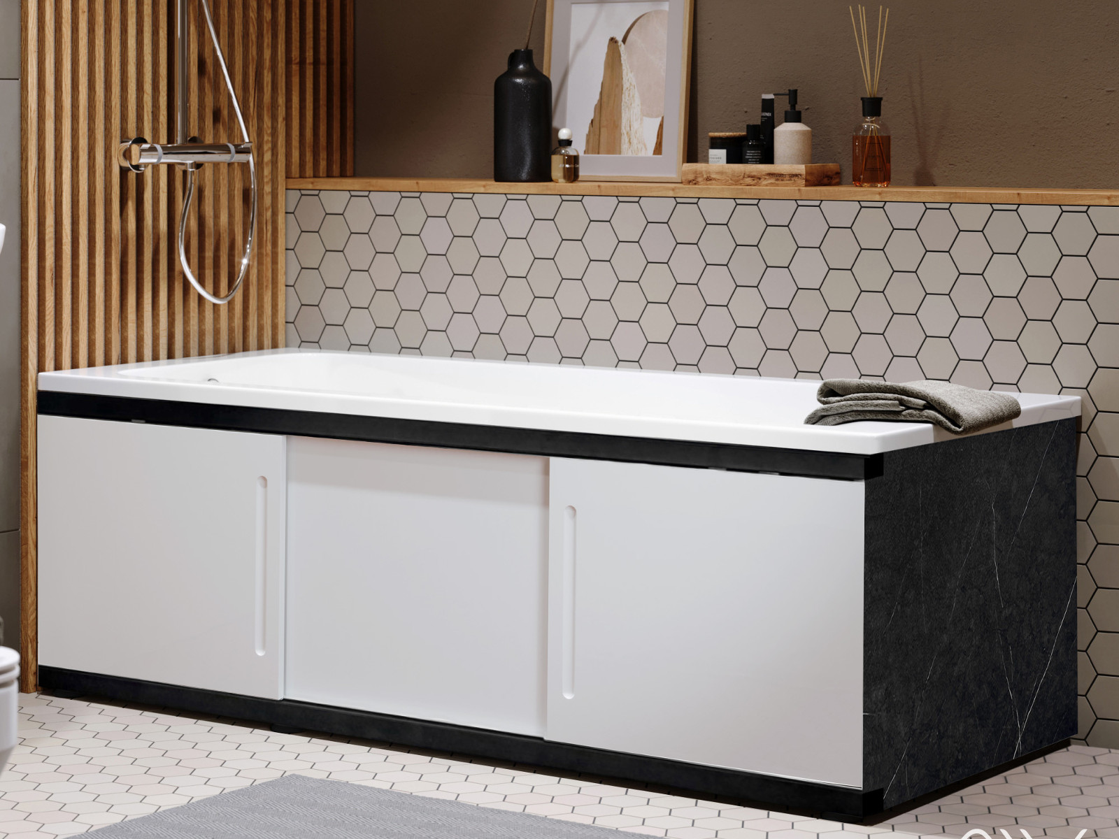 - Экран под ванну МДФ Alt Black 1700 мм белый