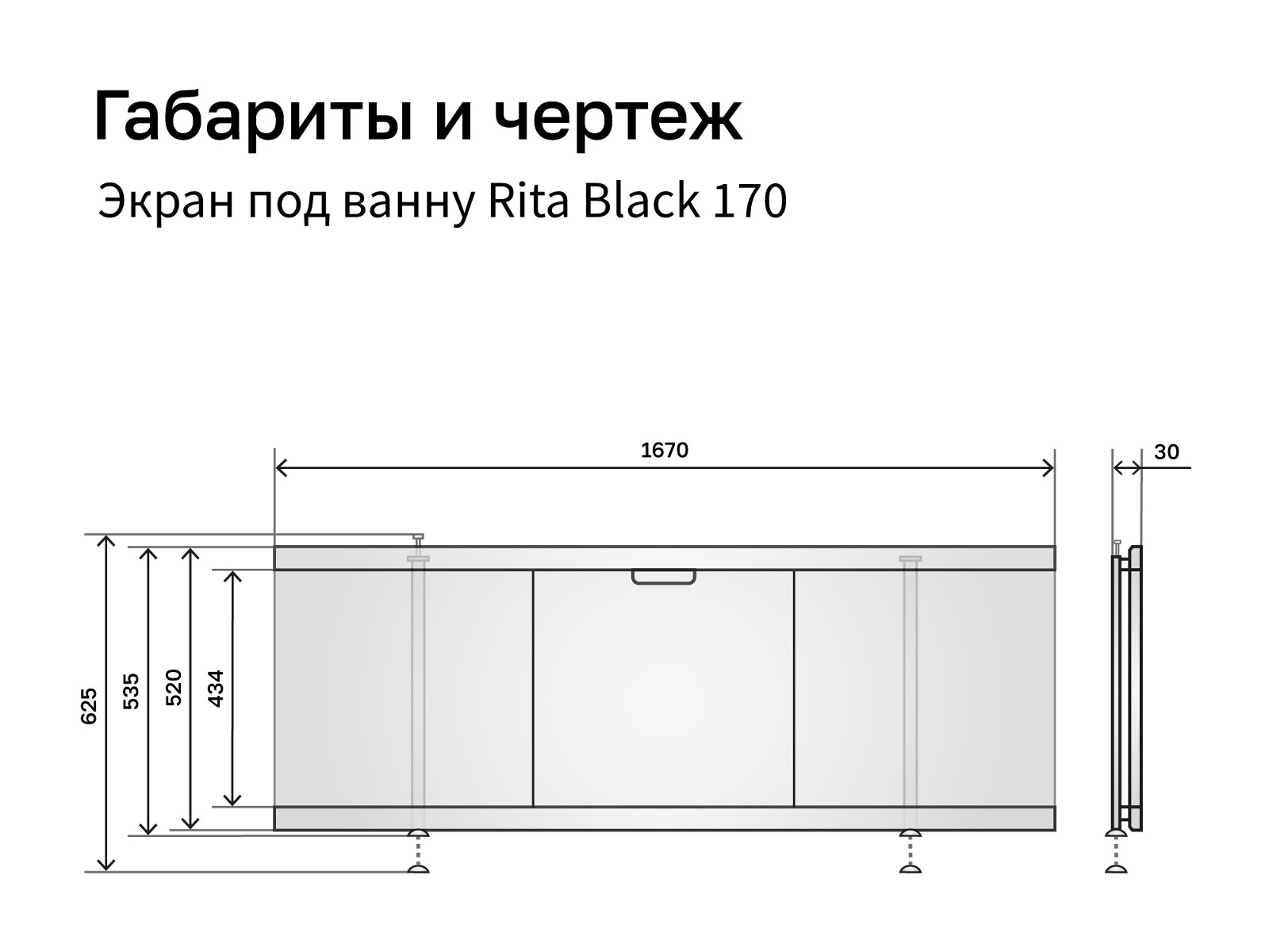 Экран под ванну МДФ Rita Black 1700 мм дуб