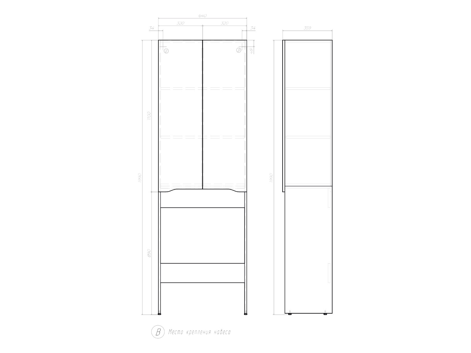 Размер (ШxГxВ): 640x359x1990 мм