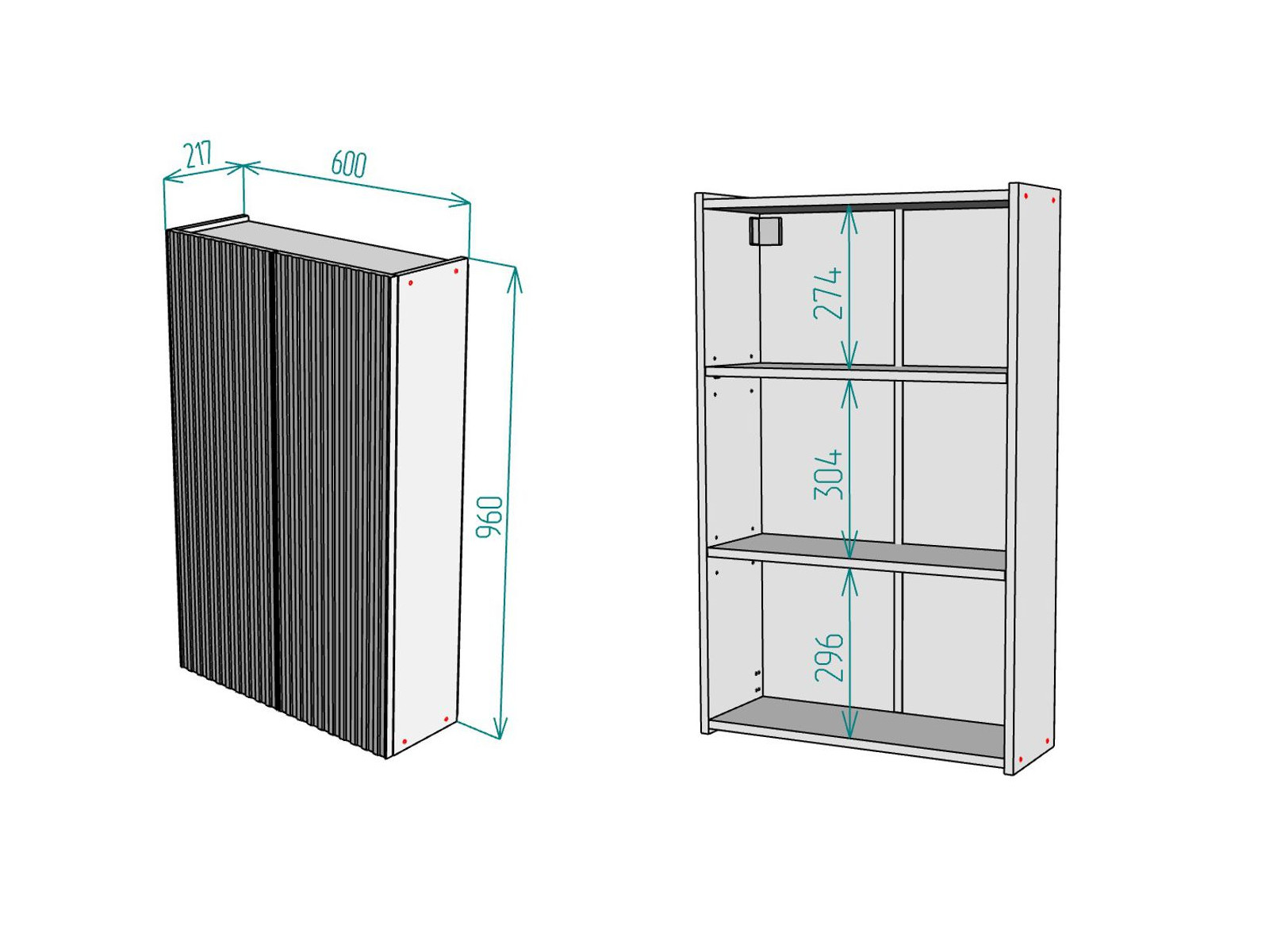 Размер ВхШхГ: 960х600х217 мм