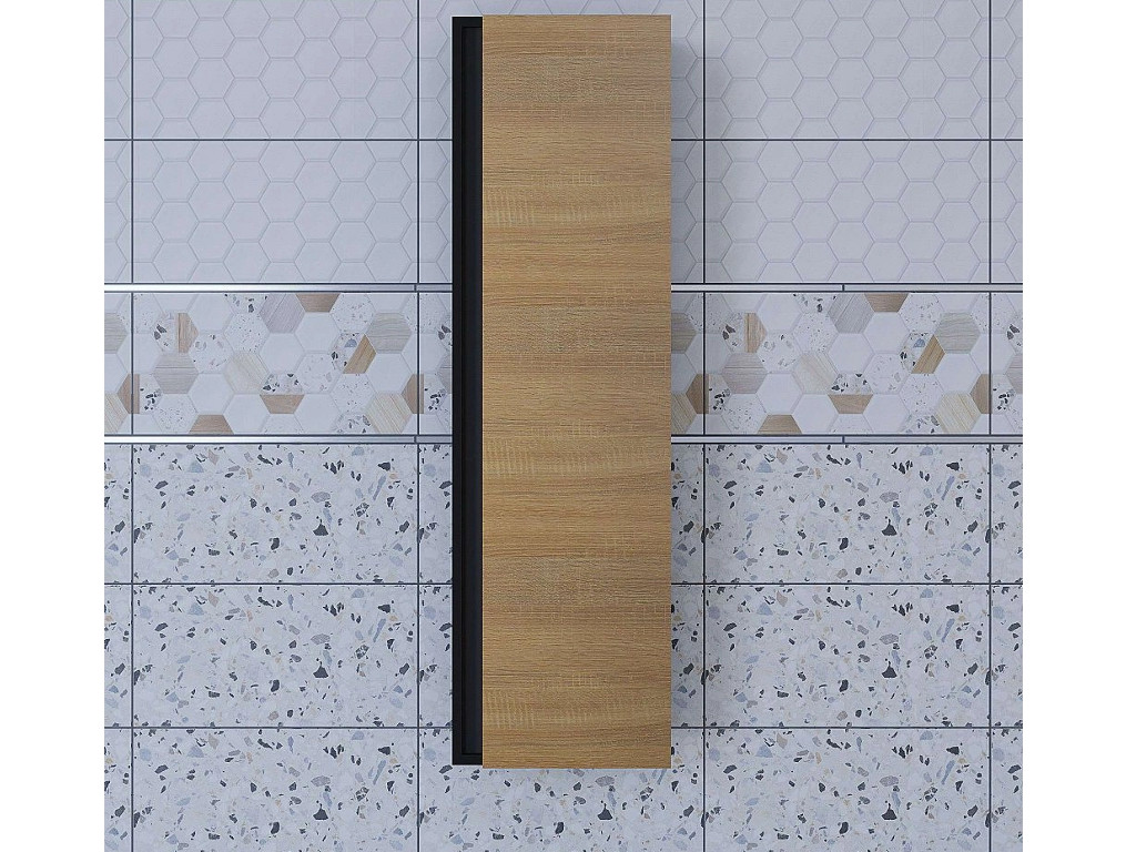 Шкаф-пенал для ванной Uperwood Barsa подвесной черный/дуб сонома