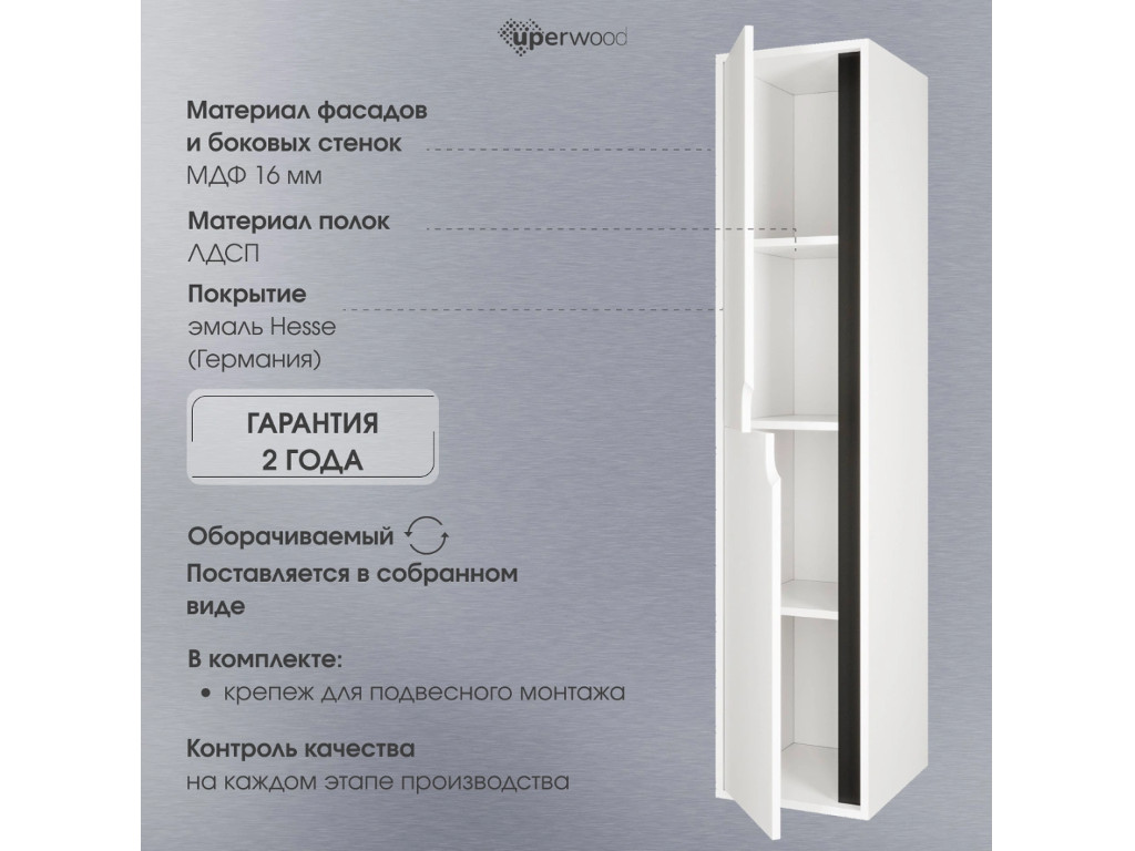- Шкаф-пенал для ванной Uperwood Modul подвесной белый/графит
