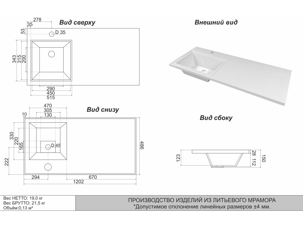 - Изготовлена из литьевого мрамора