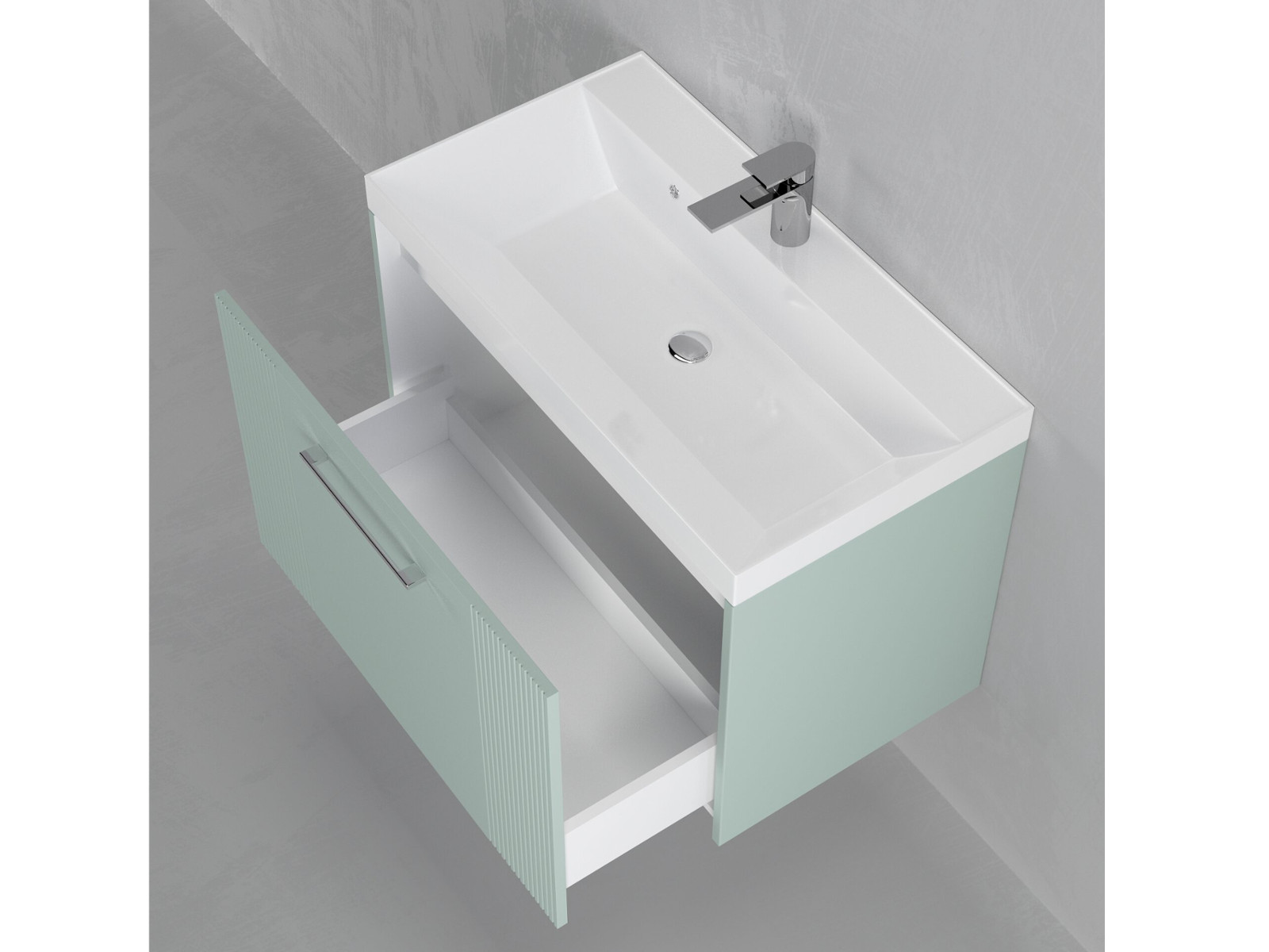- Тумба Альба 80 подвесная 1 ящик раковина Слим 80 мята