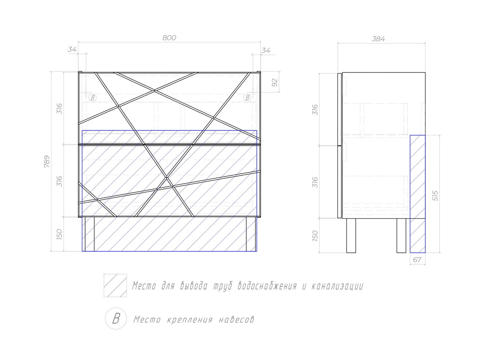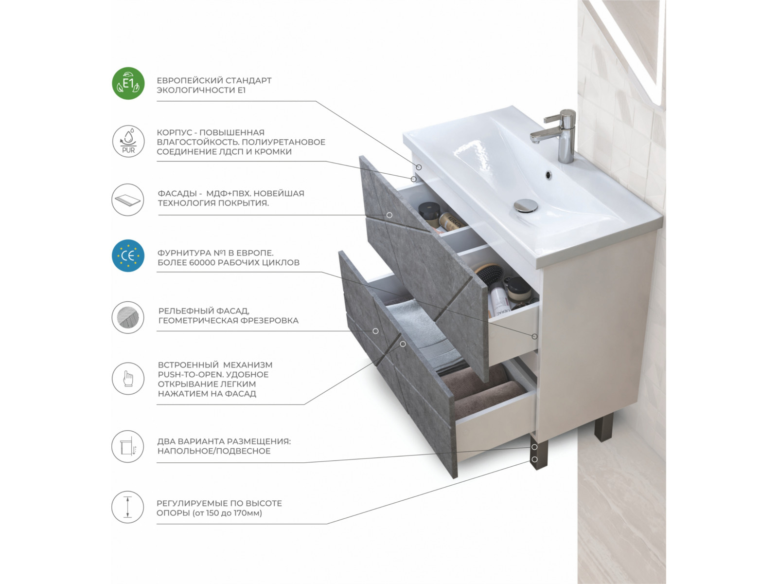 - Тумба Geometry 800-0-2 умывальник 9696 бетон