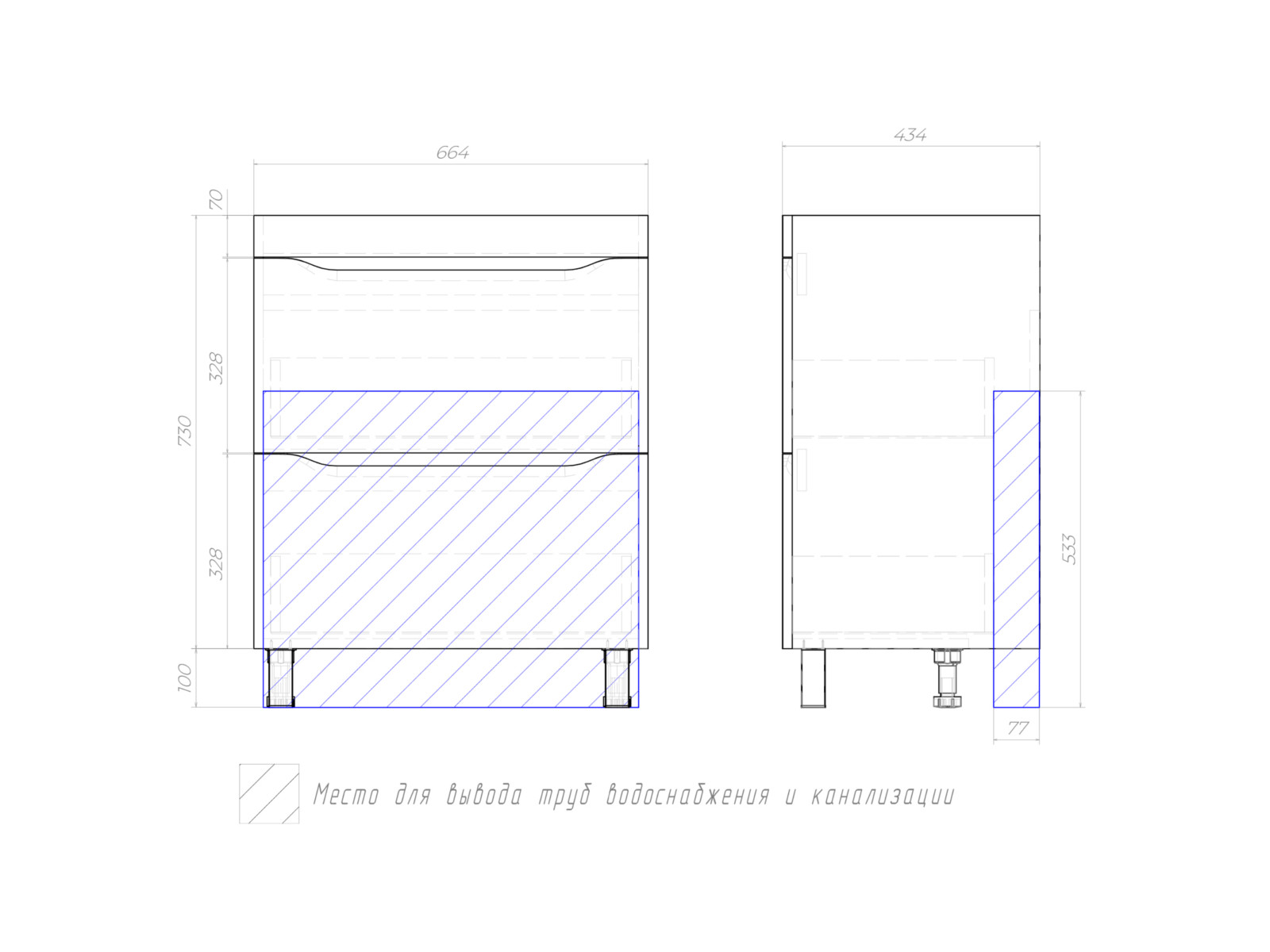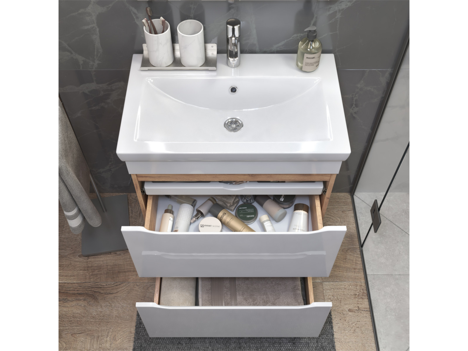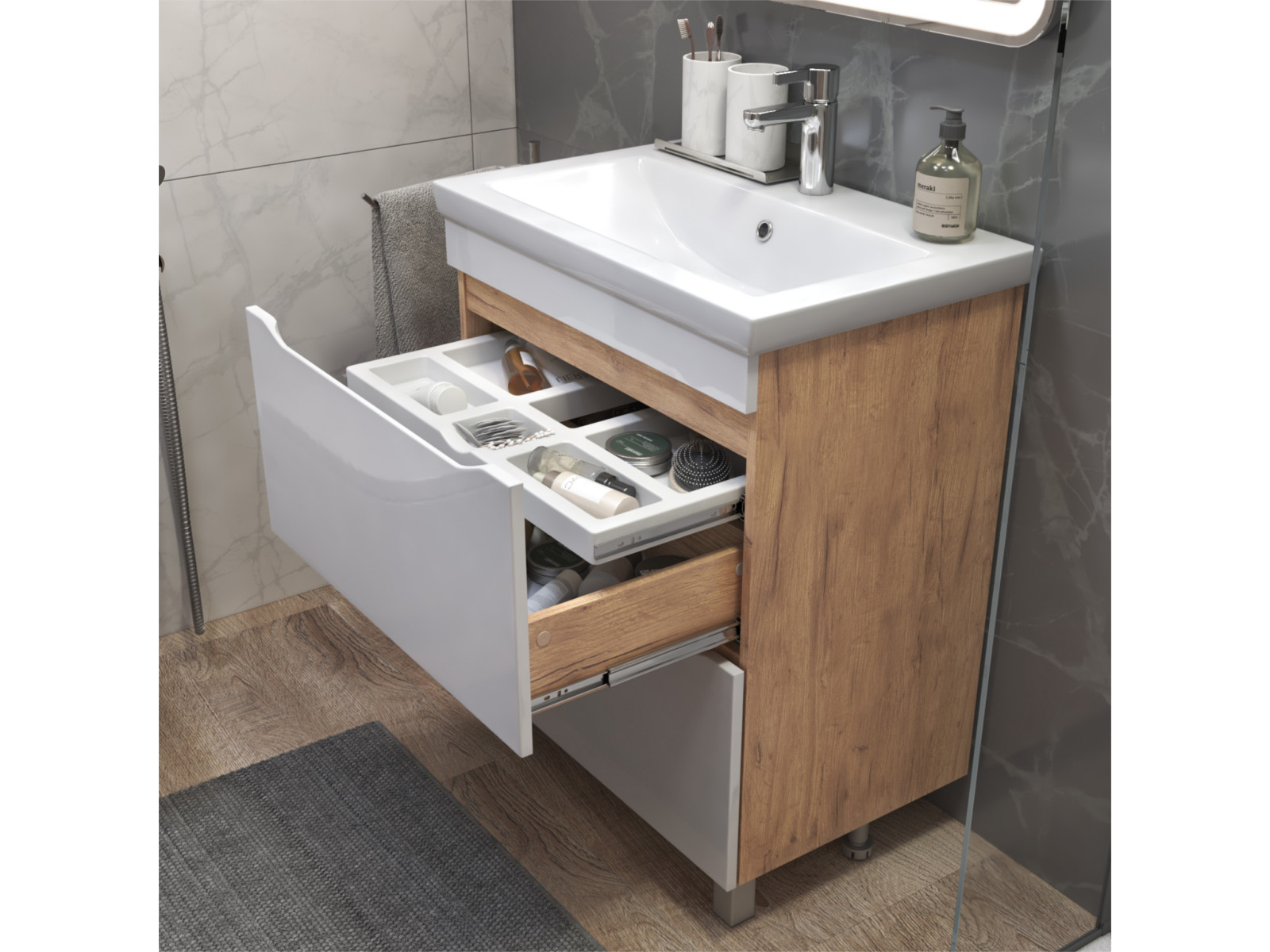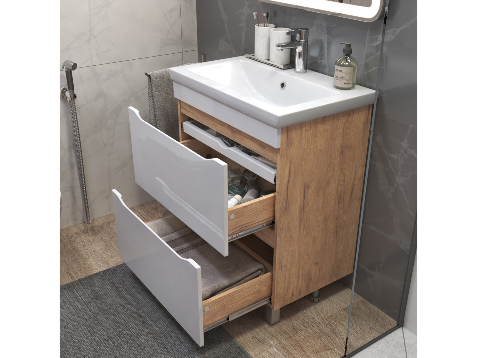 Размер тумбы с раковиной (ШxГxВ): 700x450x850 мм
