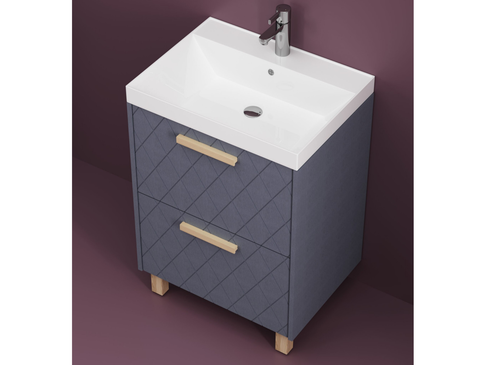 - Тумба Кристалл 80 напольная 2 ящика ручка дуб, раковина Комфорт 80 шато азур