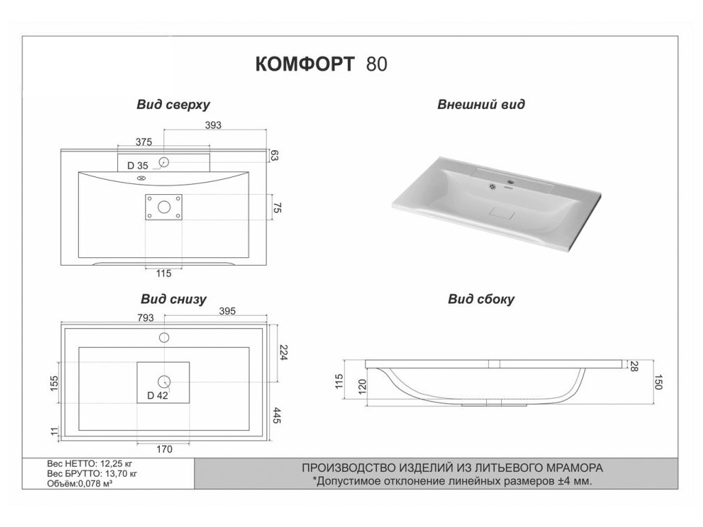- высота 800 мм