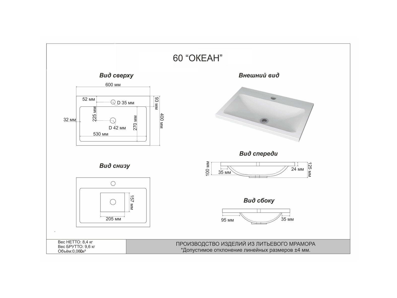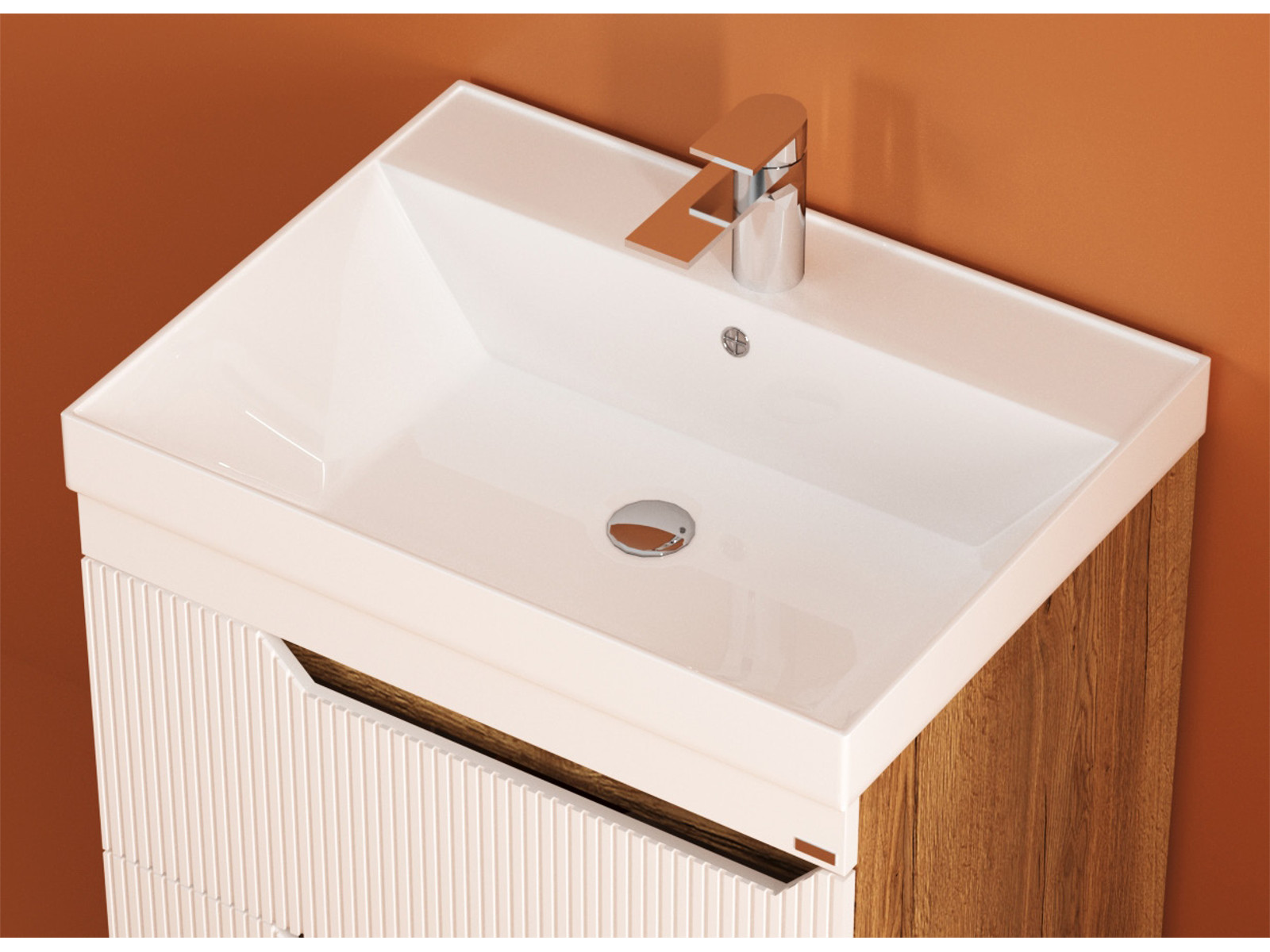 - Тумба Леон Риф 60 напольная 2 ящика раковина Океан 60 солярис/белый риф
