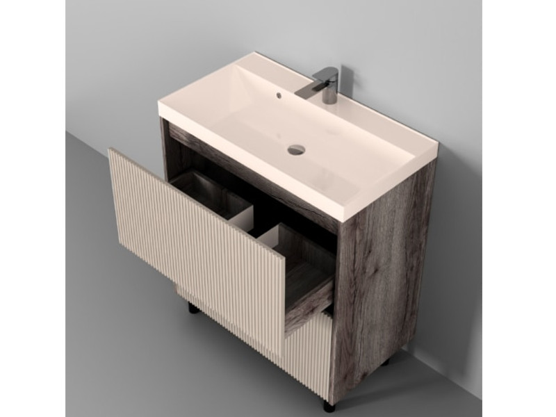 - Тумба Рица 60 напольная 2 ящика раковина Океан 60 cерый/керамика