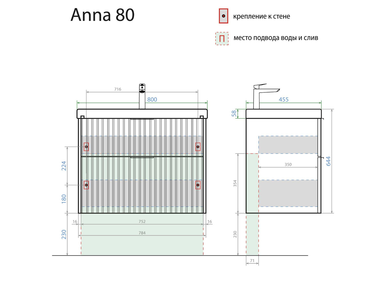 - Тумба с раковиной Anna 80 Умывальник Moduo 80